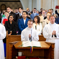 Am 10. Mai weihte Weihbischof Franz Scharl in der Pfarrkirche St. Leopold Donaufeld sieben Männer zu Diakonen für die Erzdiözese Wien. Die Kandidaten kommen aus verschiedenen Gemeinschaften: drei aus dem Wiener Priesterseminar, einer aus dem Benediktinerpriorat St. Josef in Maria Roggendorf und drei aus dem diözesanen Missionskolleg „Redemptoris Mater". Manuel Rennhofer, Joachim Loshehand und Julius Moses Münzer kommen aus dem Wiener Priesterseminar, P. Leo Maria Zehetgruber gehört dem Benediktinerpriorat St. Josef in Maria Roggendorf an drei weitere Kandidaten stammen aus dem diözesanen Missionskolleg „Redemptoris Mater“. Diese Vielfalt unterstreicht die Breite der geistlichen Berufungen in der Erzdiözese. Wir waren mit der Kamera dabei.