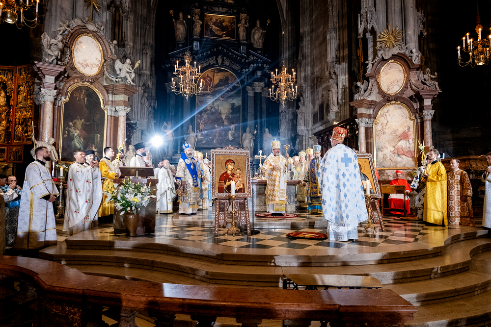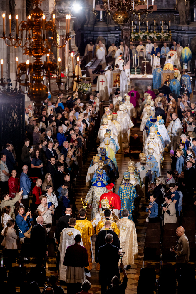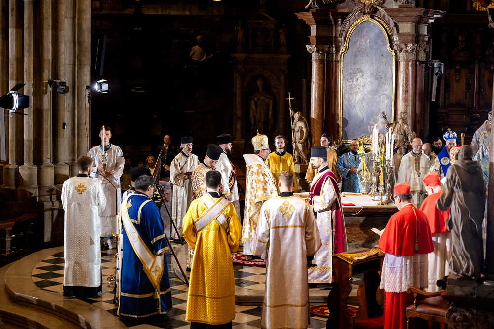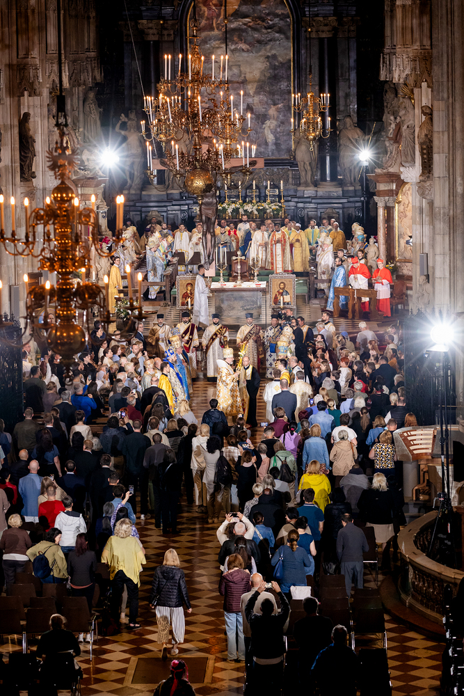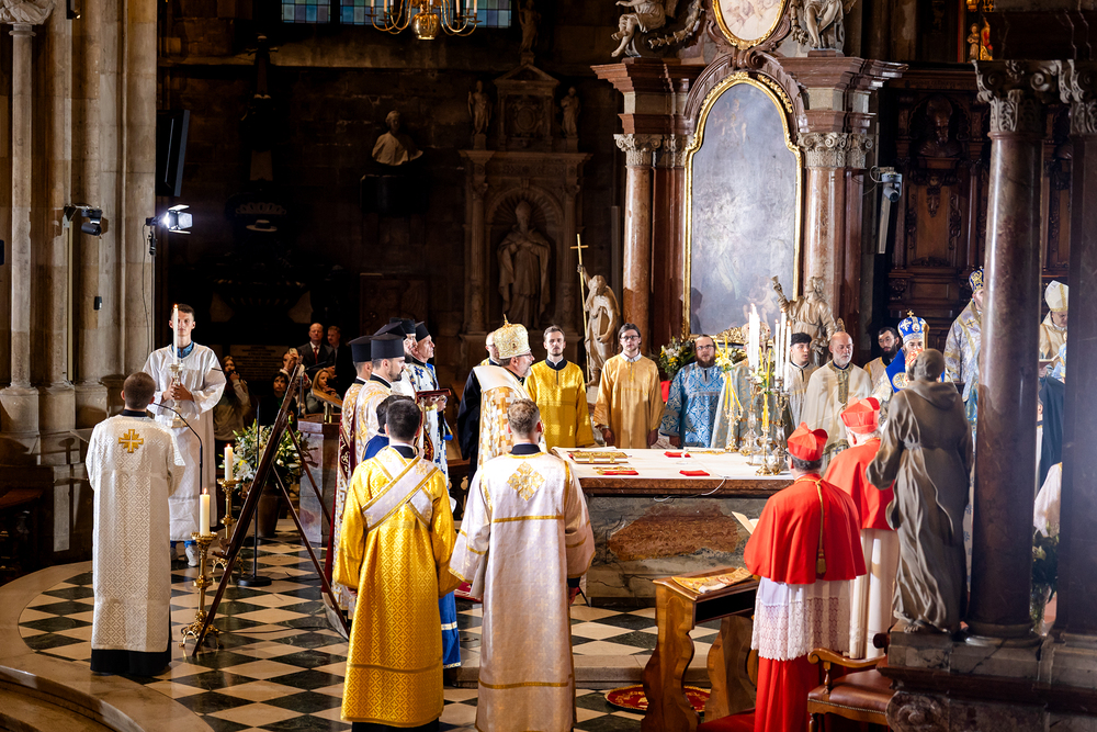 Gottesdienst im byzantinischen Ritus war Mittwochabend liturgischer Höhepunkt der Wiener Vollversammlung der Bischöfe der katholischen Ostkirchen Europas - Kardinal Schönborn in Predigt: "In der Liturgie sind wir ganz besonders mit dem Himmel verbunden", gerade in Zeiten des Krieges und der Not. Wir waren mit der Kamera dabei.