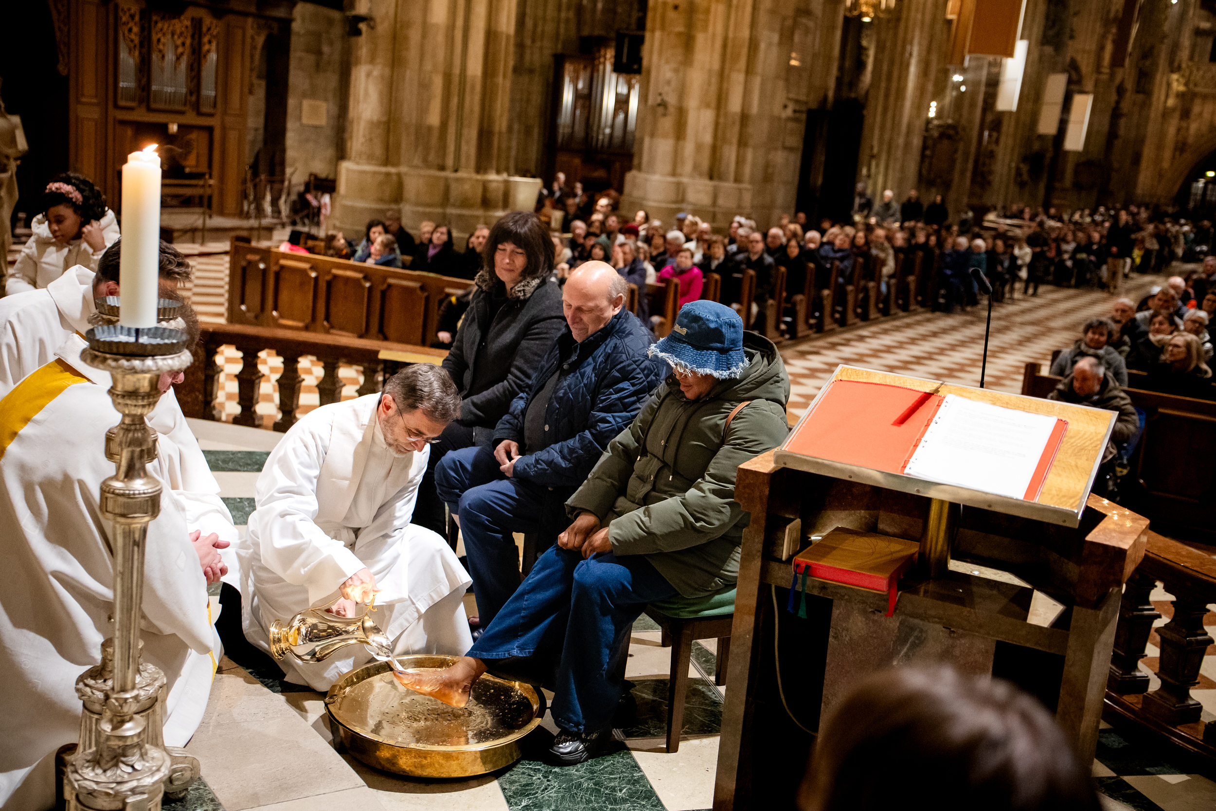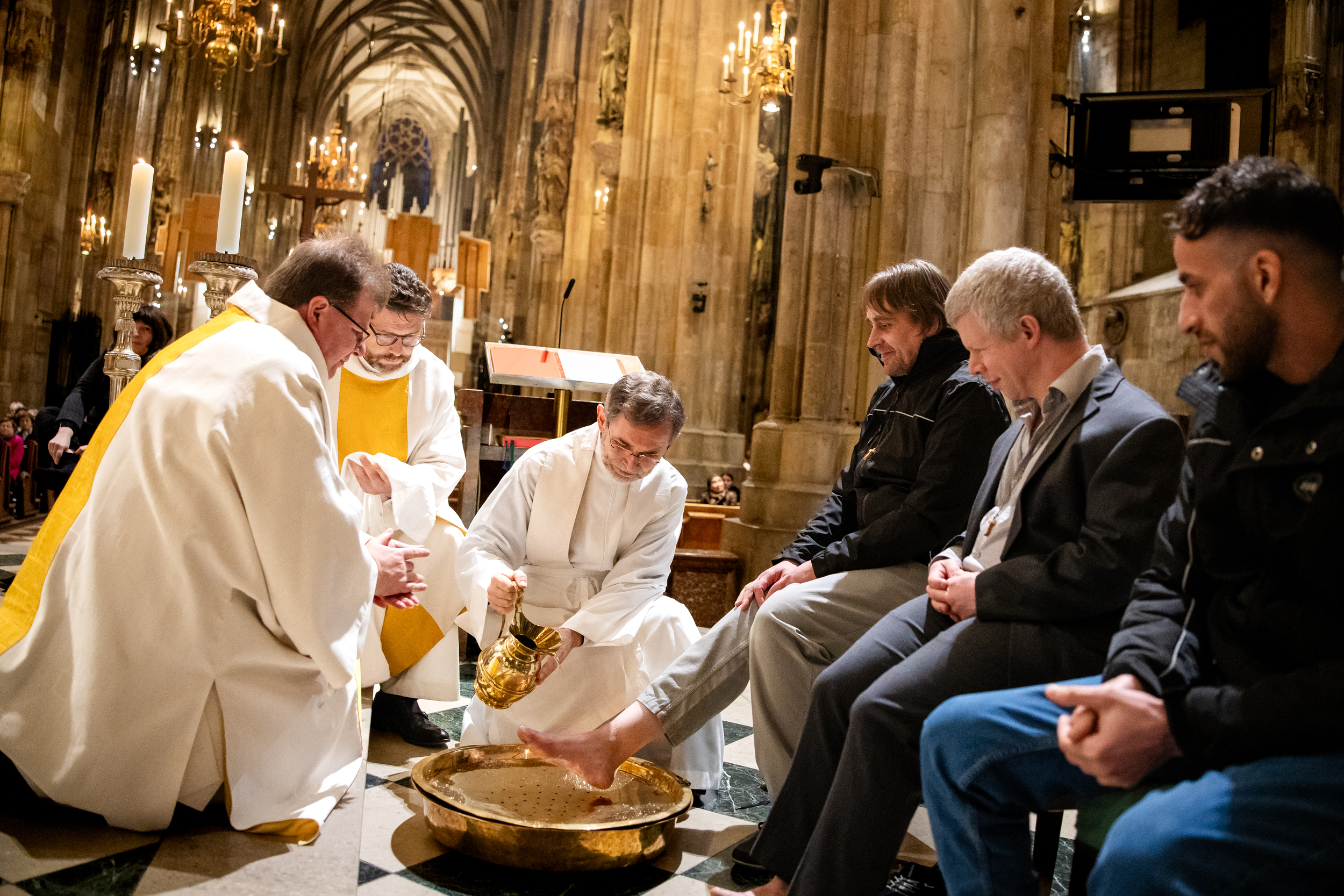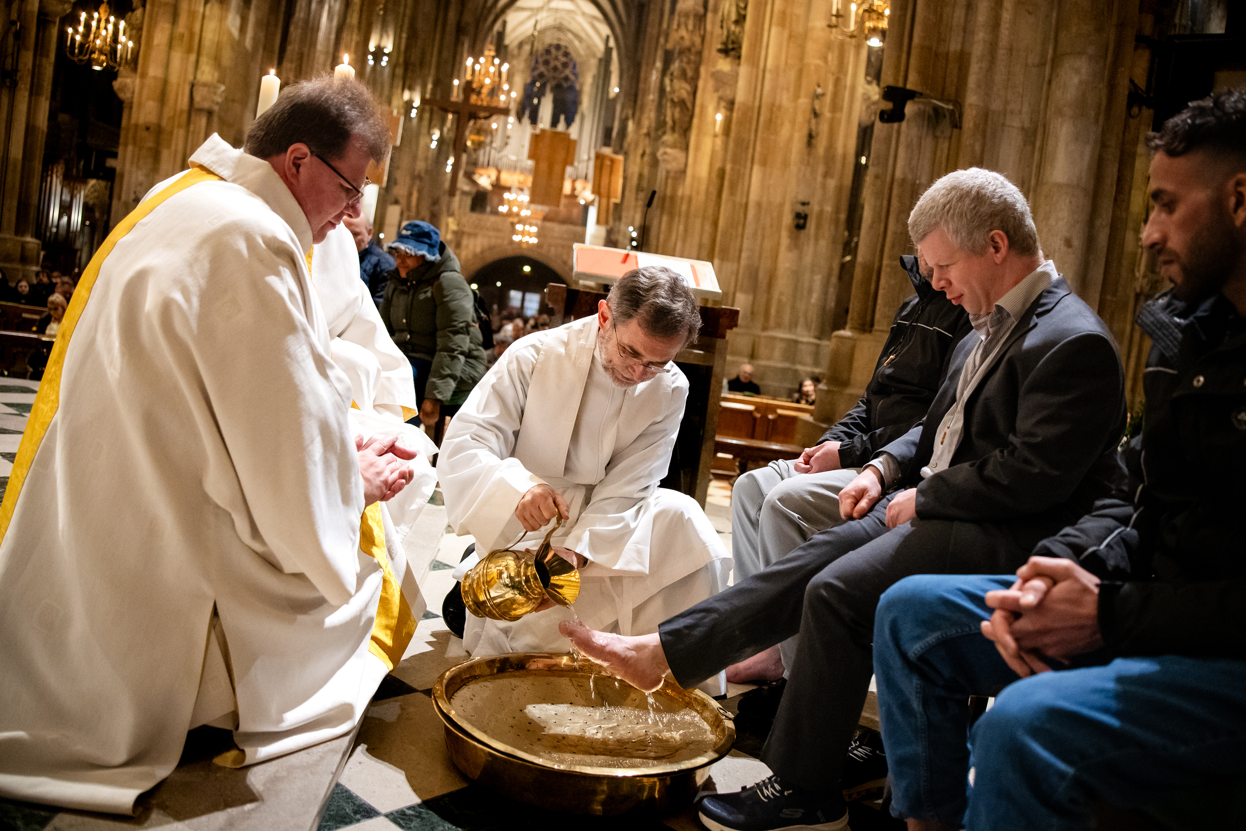 Am Gründonnerstag gedenken wir Christen des letzten Abendmahls. Die Gottesdienste an diesem Tag sind oft mit einer symbolischen Fußwaschung verbunden – wir waren mit der Kamera im Stephansdom dabei, unter der Leitung unseres Erzbischofs Josef Grünwidl.