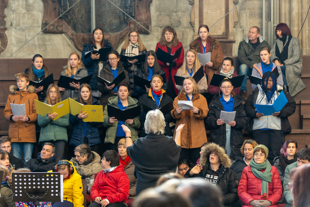 Menschen mit und ohne Behinderung musizieren gemeinsam im inklusiven Musikvermittlungsprojekt „Schubert meets Schubert“. Dabei singt ein generationenübergreifender inklusiver Chor Musikstücke aus der „Deutschen Messe“ von Franz Schubert, dessen Todestag sich heuer zum 195. Mal jährt. Der Chor setzt sich aus dem Jugendchor der Musikschule Perchtoldsdorf, dem Chor der Karl-Schubert-Schule und dem Chor „Am Hasensprung“ zusammen. Hinzu kommen die „Karl Schubert Bande“ und das inklusive Blockflötenensemble der Musikschule Wien-Liesing „Alle gemeinsam“. Einige Lieder wurden außerdem von der Organistin Elisabeth Lee auf der Orgel begleitet. Sie umrahmen den Gottesdienst mit traditionellen Adventliedern und modernen Kirchenliedern. Die Mitglieder der Glaubens- und Musikgruppe „Faith4U&Me“, in der sich Menschen mit und ohne Behinderung engagieren, werden ministrieren und stellen das Evangelium pantomimisch dar.