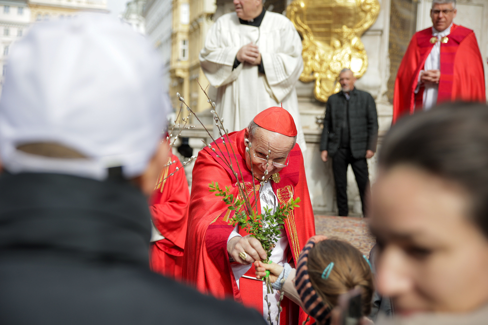 Traditionell werden am Palmsonntag, eine Woche vor Ostern, in der Wiener Innenstadt die Palmkätzchen von Kardinal Christoph Schönborn gesegnet. Die Palme ist ein Symbol des Sieges und steht im Christentum für das ewige Leben. Wir waren mit der Kamera dabei.