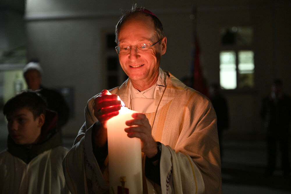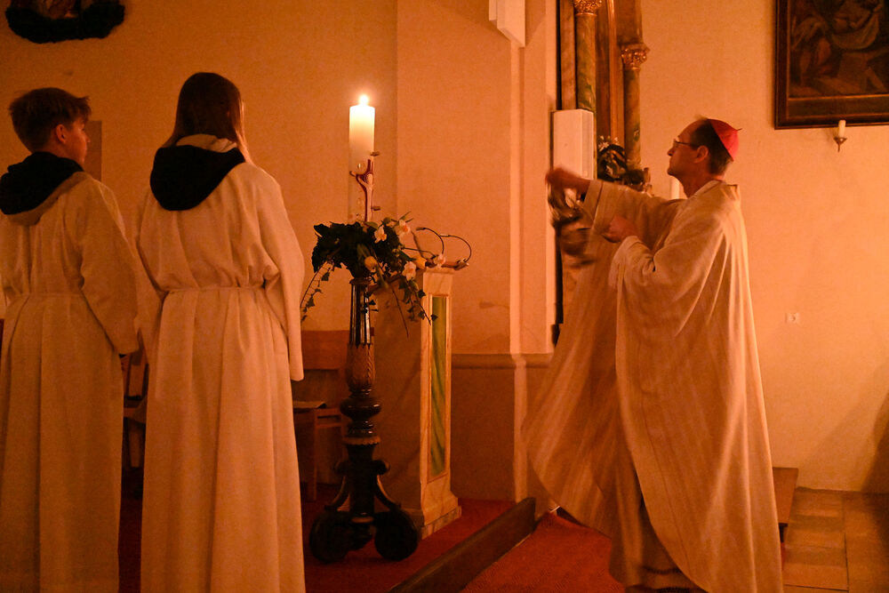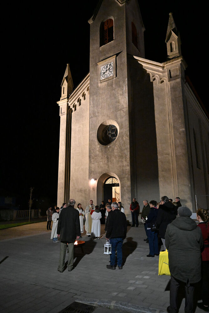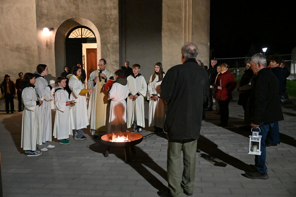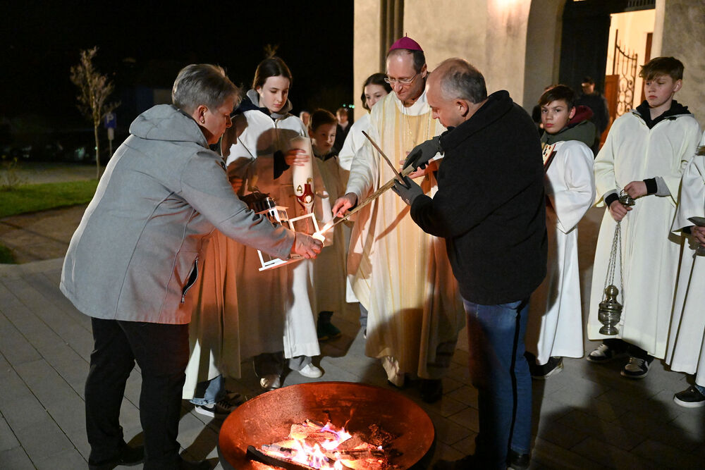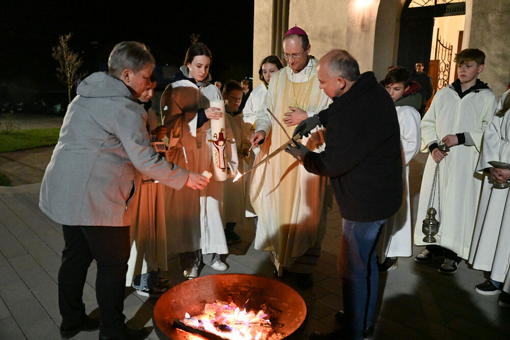 Die Pfarren Hautzendorf und Unterolberndorf hielten ihre Osternachtsfeier gemeinsam ab. Bischof Stephan Turnovszky stand der Feier als Zelebrant vor.