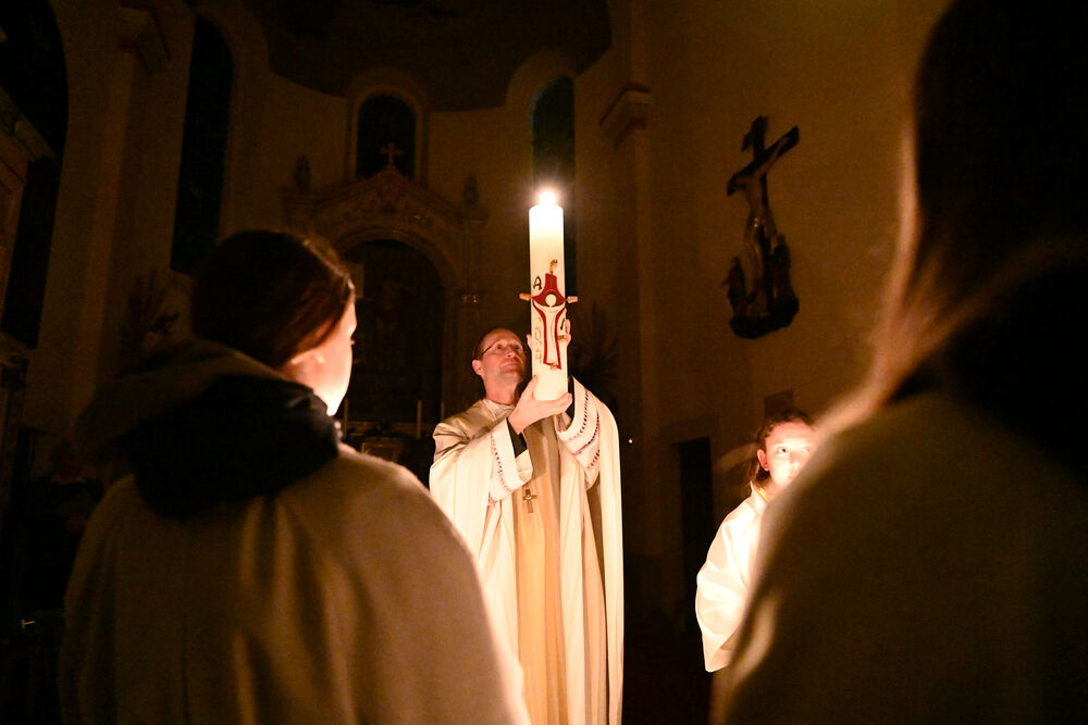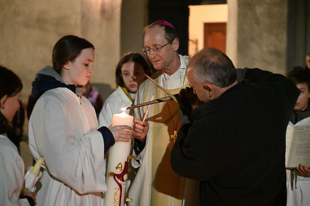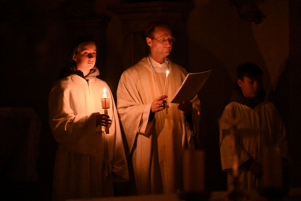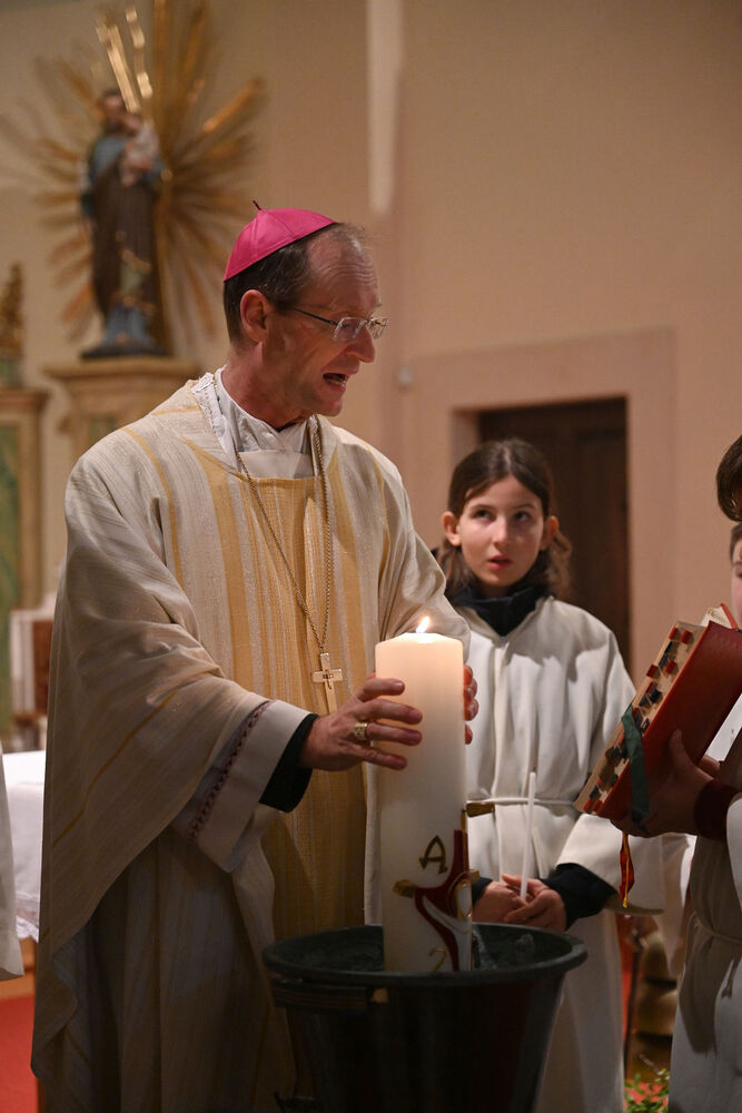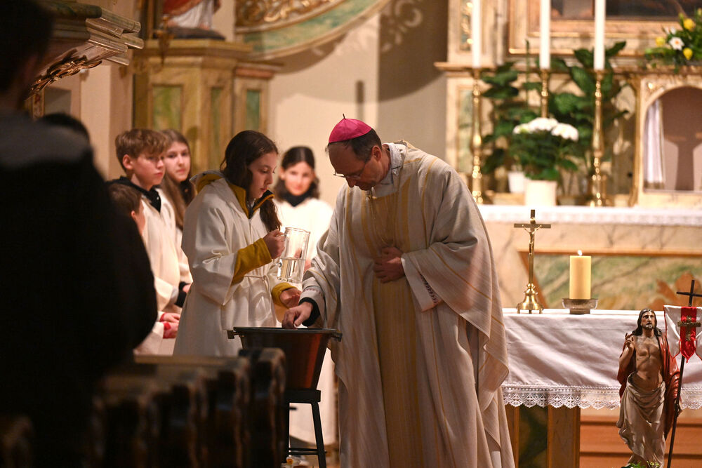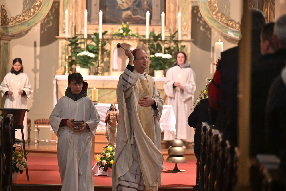 Die Pfarren Hautzendorf und Unterolberndorf hielten ihre Osternachtsfeier gemeinsam ab. Bischof Stephan Turnovszky stand der Feier als Zelebrant vor.