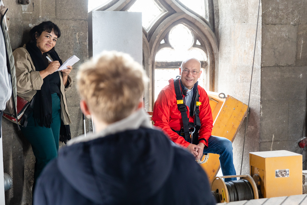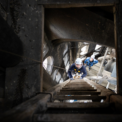 Im Vorfeld des Gottesdienstes bestieg Maturant Felix, der Gewinner des Preisausschreibens, mit Dompfarrer Toni Faber den 137 Meter hohen Südturm des Stephansdoms – ein Symbol für die Matura, die letzten Meter der Schulzeit. Wir haben die beiden mit der Kamera begleitet.
