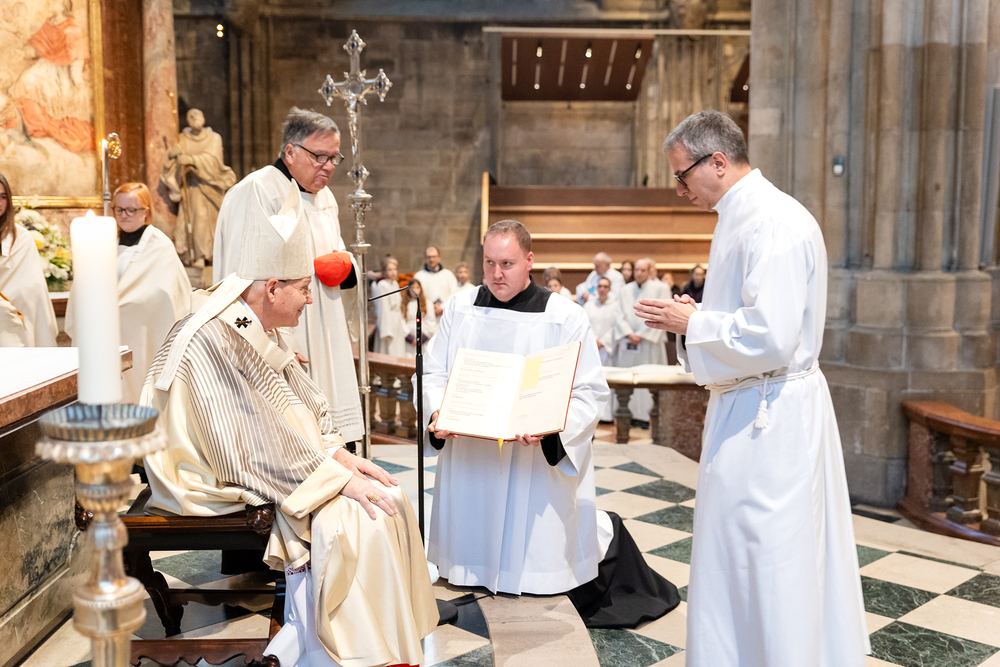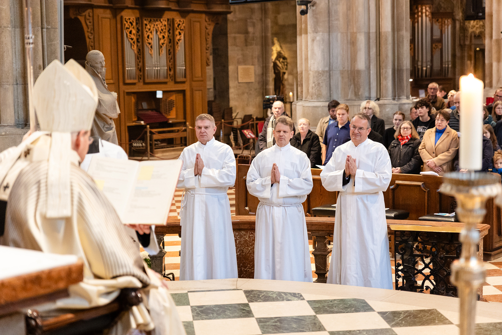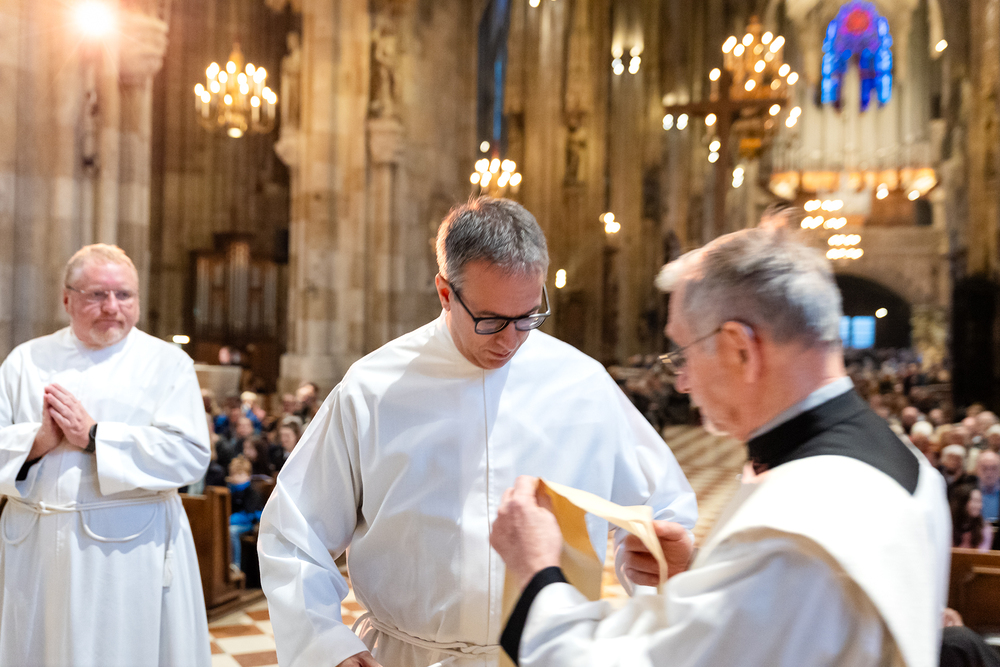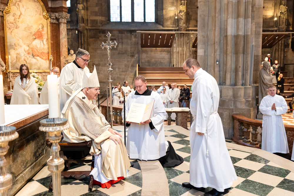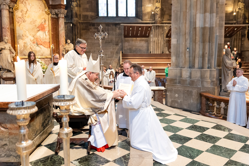 Am 9. November wurden sechs verheiratete Männer von Kardinal Schönborn im Wiener Stephansdom zu Ständigen Diakonen geweiht. Wir waren mit der Karmera mit dabei.